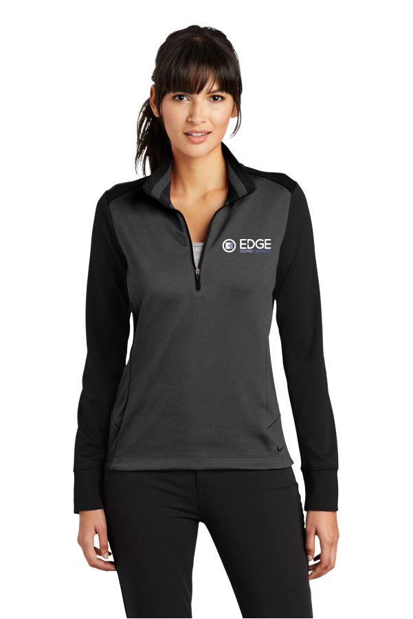 A boldly striped inner collar and reverse coil zipper give this cover-up an edge. Of course, it also performs with Dri-FIT moisture management technology. The design features a flat knit collar and cuffs and an open hem. Tailored for a feminine fit with shaped sleeve cuffs and a drop tail hem. The contrast Swoosh design trademark is embroidered on the left hem. Made of 8.3-ounce, 100% Dri-FIT polyester.