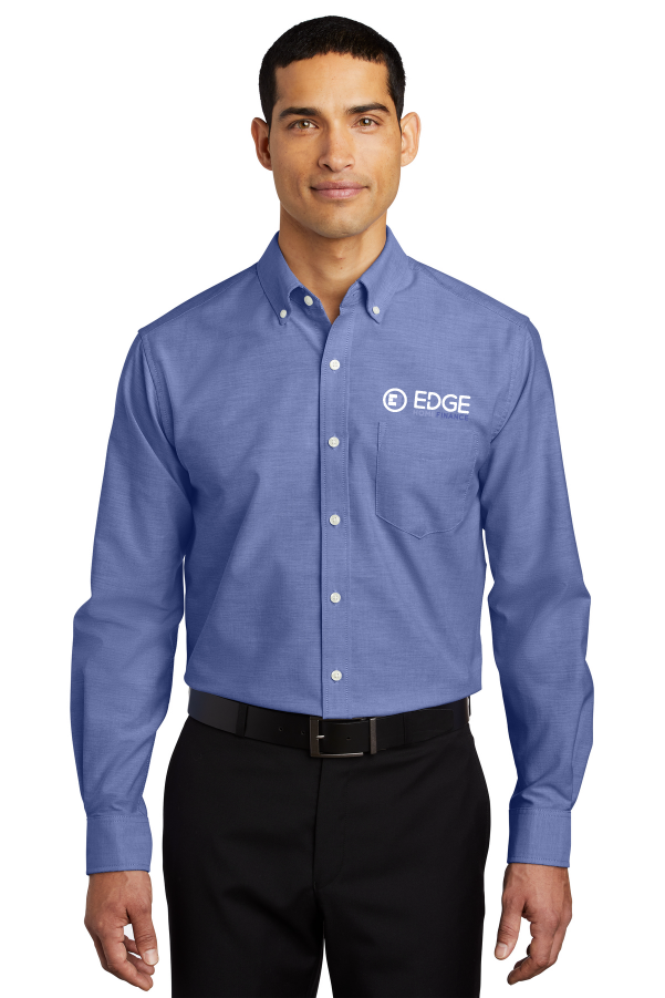 Look your best in a tried-and-true oxford that performs. Designed to release stains, our wrinkle-resistant SuperPro Oxford has a soft hand to keep you looking neat and professional all day long.